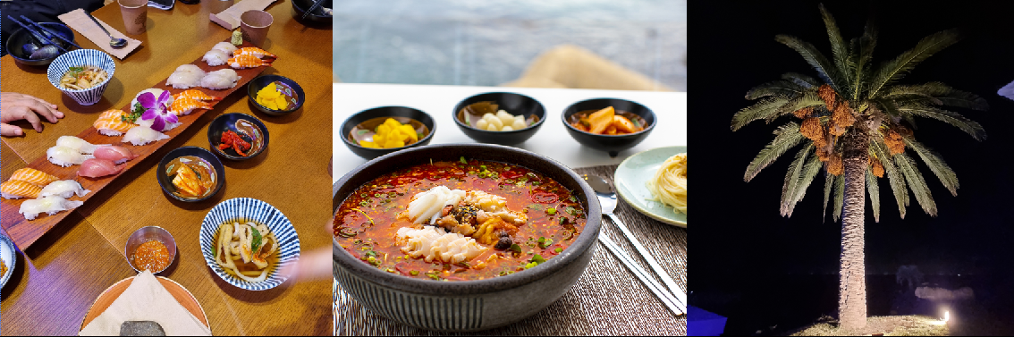 해가 떨어지고 요트투어를 마친 우리는 바로 옆 항해 진미에서 초밥과 초밥, 물회를 주문해서 맛있게 먹었습니다.