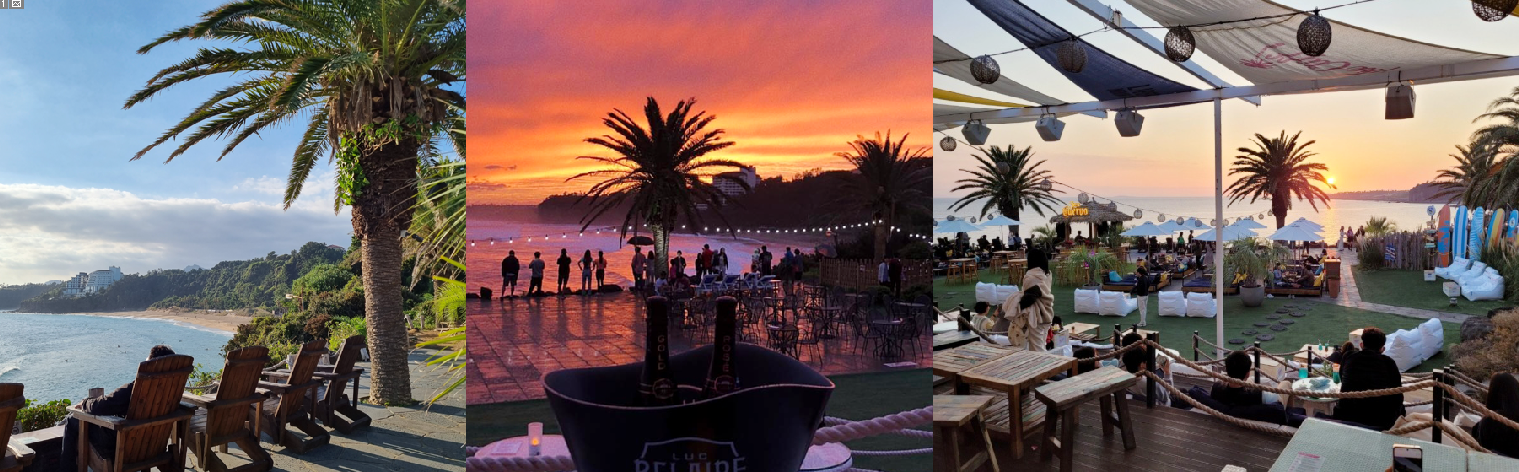 우리는 13시 50분 마라도 출발해서 다시 운진항으로 돌아왔고, 약간 지친 일행을 버스 사장님은 중문 핫플레이스 클럽인 더 클리프로 가서 바다전망이 제일 좋은 곳을 배경으로 사진 촬영을 해주셨어요. 지는 노을을 즐기기 위해 많은 여행객들이 자리를 하고 있었고, 대부분 젊은이들이 클럽 분위기를 만끽하고 있었습니다.