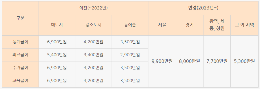 2023년 급여별 선정기준